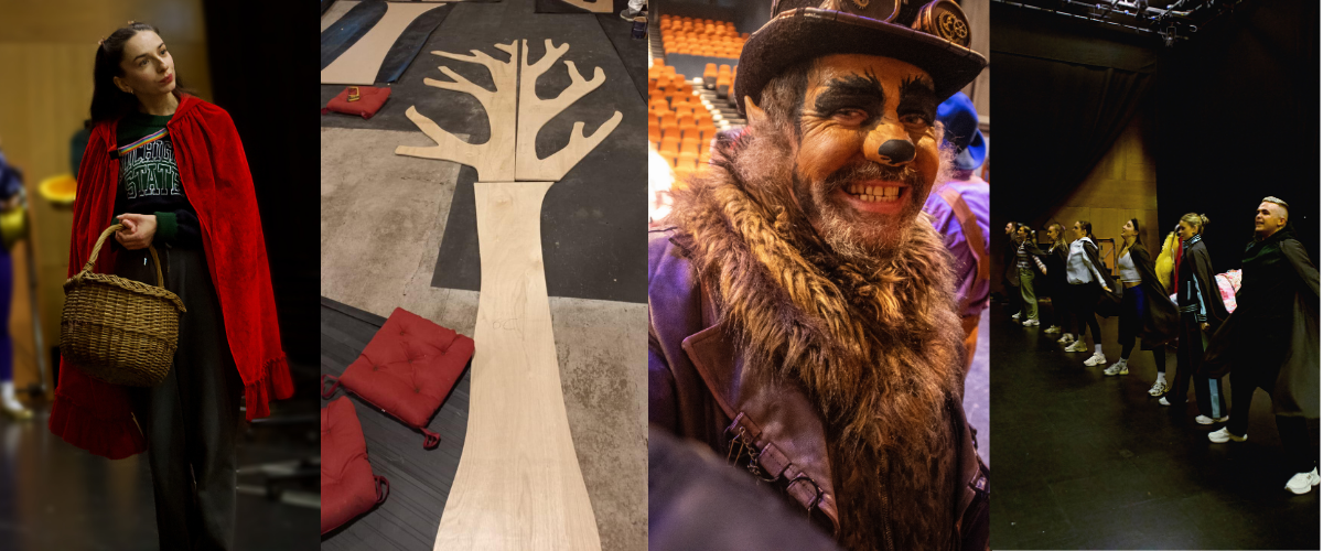During tech week our crew transformed the rehearsal room’s imaginings into glamourous Panto reality in Lime Tree Theatre. This is a time of electric energy, last-minute fixes, and shared excitement. Director, writer, designers, and performers alike are working together to ensure that by opening night, the story of Red Riding Hood shines brighter than ever.